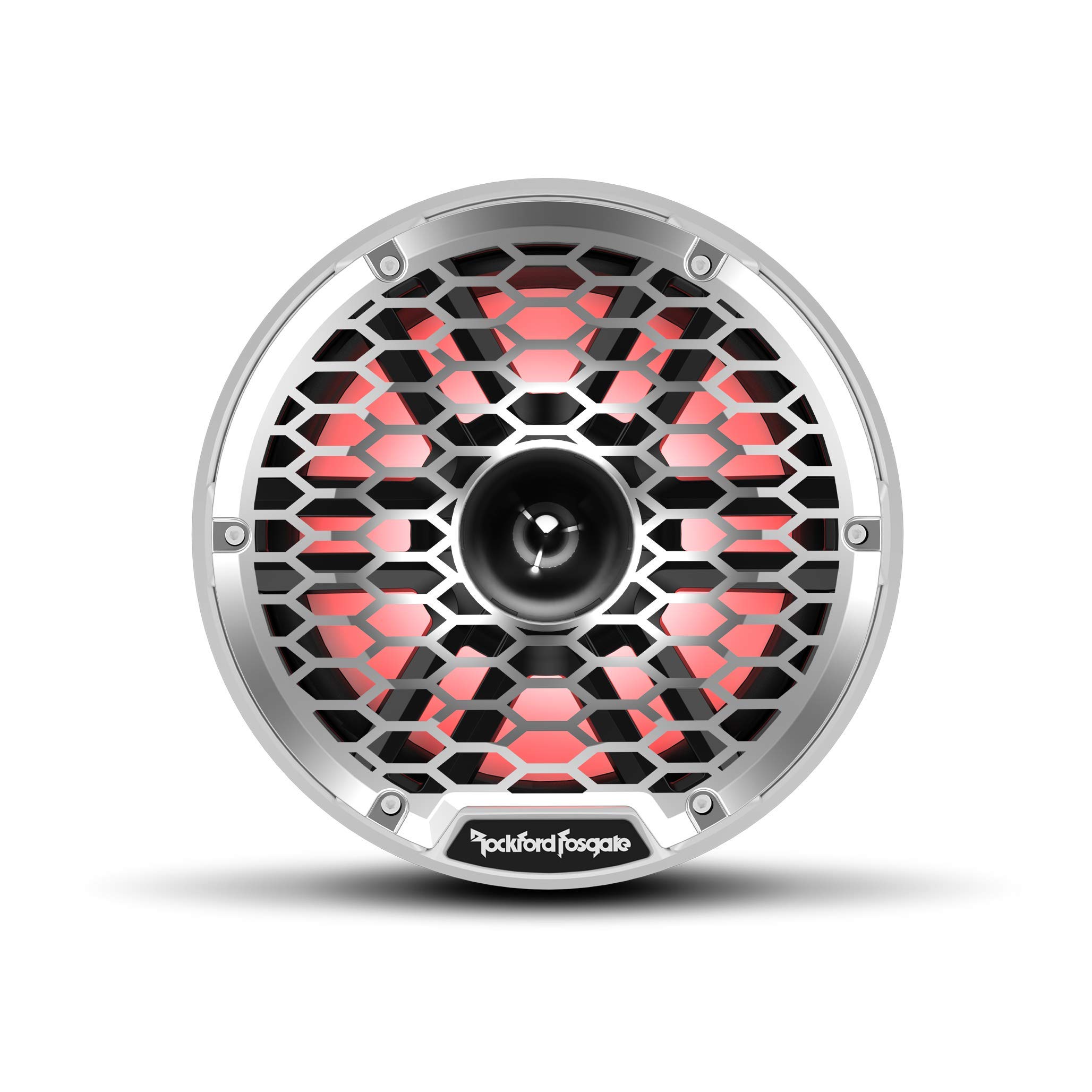 Rockford Fosgate M2-8H Color Optix 8” 2-Way Coaxial Multicolor LED Lighted Marine Speakers with Horn Tweeters - White/Stainless (Pair)