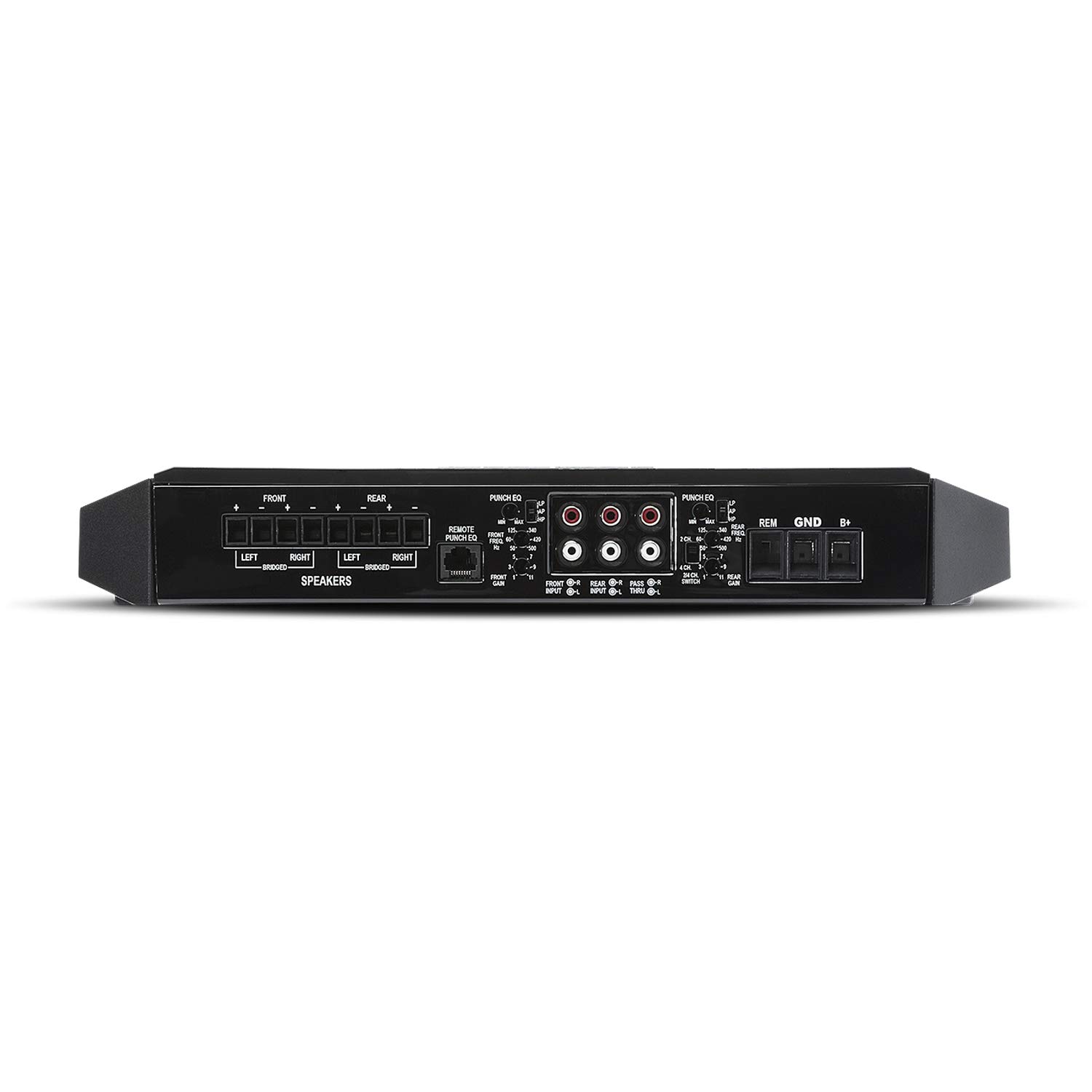 - Featuring differential RCA inputs and RC pass-thru, variable Punch EQ with +18dB boost @ 45Hz and/or +14dB @ 12.5KHz and 24dB/octave Butterworth crossover make T1000-4ad an impressive POWER house