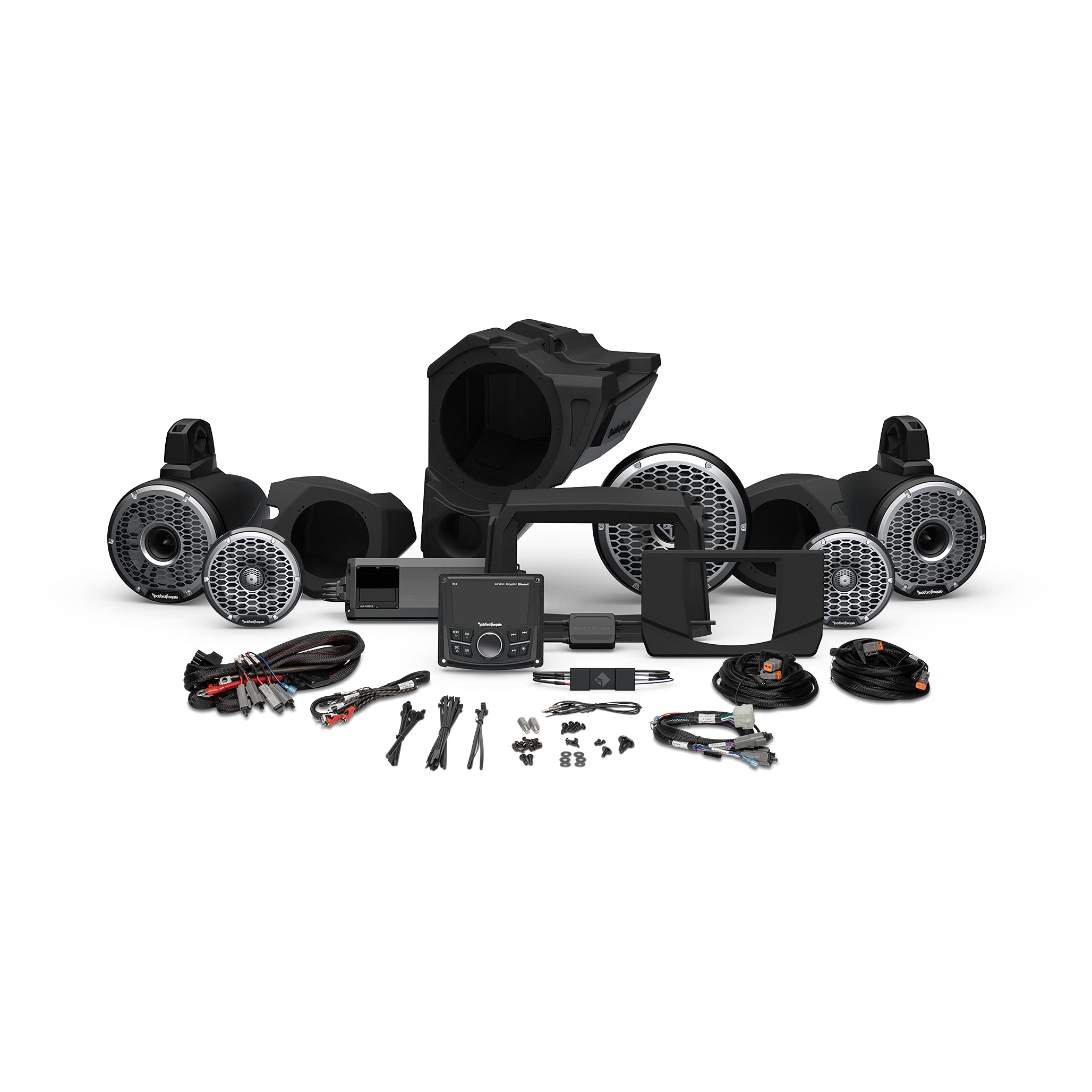 Rockford Fosgate RZR14-STG6 Audio Kit: PMX-3 Receiver, 1500-Watt Amp, M2 Series Color Optix Multicolor LED Lighted Front Speaker, Subwoofer & Rear Horn Speaker Kit for Select RZR Models (2014-2021)