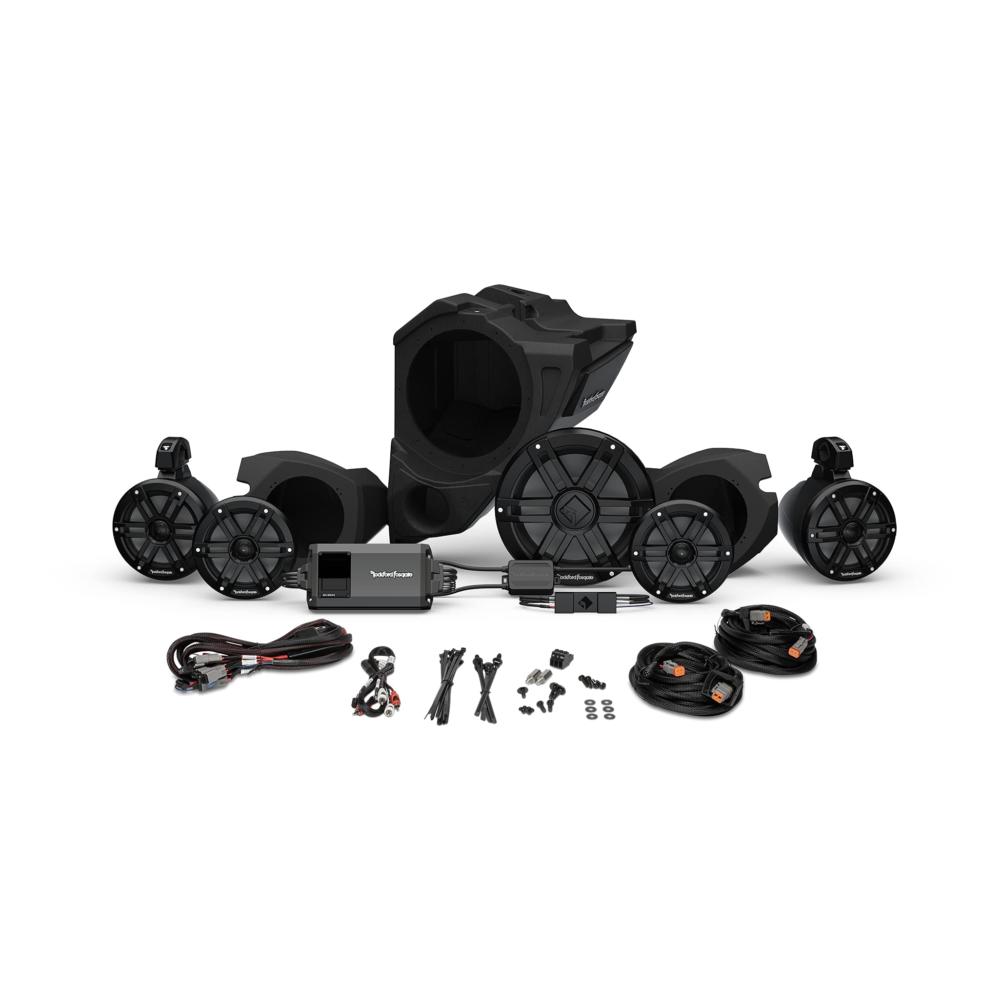 Rockford Fosgate RZR14RC-STG4 Audio Kit: Ride Command 2-Way Interface, 800-Watt Amp, M1 Color Optix Multicolor LED Lighted Front, Rear Speakers & Subwoofer for Select RZR Models (2014-2021)